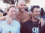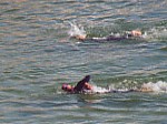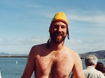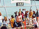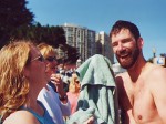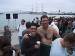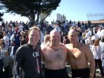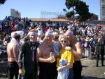 Ray's 2nd year he decided to do the swim without a wetsuit. He'd joined the dolphin club, and was so into that experience (boat building by hand, old guys telling stories in the sauna, what's not to love?) that he wanted to swim "dolphin-style". He'd trained in the cove, and never wore a suit, so what's the big deal? Well, that would be the current, waves, etc..I think he was in the water for 1 ¼ hours. When he came out he was blue. And vibrating from the cold. I frantically tried to warm him with towels. Then suddenly, from out of the crowd, comes a brother from Tulane, who I'd never met. So Ray becomes Mr. Social, handing out beers, while his teeth are chattering and his skin is slowly slowly slowly fading from aqua to pale purple. I thought I'd strangle him. He wore a suit again every year after that one!