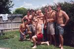 Last year, I wrote about Ray taking a break from his cross-country trip to (unexpectedly) attend my wedding. I finally dug through the box-o-memories and found these pictures. The first two are photographs from the wedding - a pre-ceremony pool party and the reception. The last two images are from one of Ray's famous picture postcards that he sent me afterwards.